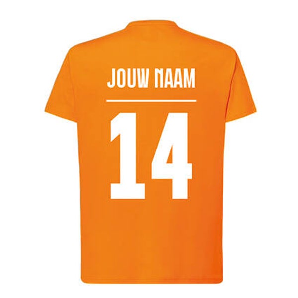 Maak jouw supportersoutfit uniek met dit unisex oranje t-shirt met eigen naam en rugnummer. Of je nu juicht voor Oranje tijdens het WK of EK, een team vormt met vrienden of een origineel cadeau zoekt: met dit gepersonaliseerde shirt val je gegarandeerd op.